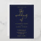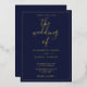 Elegant Script Navy Blue Wedding Gold Foil Invitation