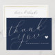 elegant script navy blue wedding thank you card