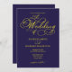 Elegant Script Navy Blue Yellow Wedding Invitation
