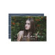 Elegant graduation announcements featuring the graduate's horizontal photo with "Graduate" in white script lettering. Personalize the front of the photo graduation announcement by adding the graduate's name, school name, and graduation year. The announcement reverses to display a navy and white hand-drawn stripe pattern.