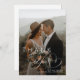 Modern chic love heart calligraphy script bride and groom printable thank you card with white text overlay, 2 photos, and editable message text template. Digital download and/or print available.