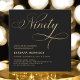 Elegant Script Ninety Black Gold 90th Birthday Invitation