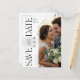 Announce your upcoming wedding with this elegant and modern "Save the Date" postcard. Featuring a sophisticated script font for the main announcement and clean typography for essential details, this design exudes timeless romance. The layout allows for a personal photo to be incorporated, making it a cherished keepsake for your guests. This design is perfect for couples looking for a stylish and memorable way to share their special date with loved ones before the formal invitation.
