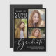 Black magnetic card keepsake graduation announcement featuring a 3 picture photo collage and "Graduate" in an elegant white script. Add the grad's name, class year and school or university in modern white typography.
