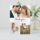Elegant, Minimalist, Modern Hand Written "Thank You" Script Photo Collage Card. Stylish wedding thank you card template featuring three (3) photo on the front and one (1) photo on the back. Featuring a "Thank You" text in a swirly hand lettering typography or calligraphy script swash tail font in black on white background. Easy to add names and thank you message. If you prefer to handwrite your note, just delete the sample text to make more space. If You need help or matching item, please contact to me!