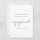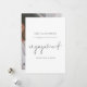 Elegant Script Photo Engagement Announcement A simple and elegant black and white design to announce your happy news. Engagement is in a modern set script is in the center.The rest of the text you can easily personalise and replace the sample photo on the back with your own. Text and background colors can be changed if you wish to better suit your wedding theme via the customise further option.