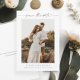 An elegant script photo save the date with vertical photo and minimal typography. Click the personalize button to customize this design.