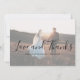 Modern photo Wedding Thank You Card featuring a simple and stylish design with "Love and Thanks" in an elegant script typography along with your names and wedding date over your favorite horizontal picture. The backside has a second square photo and your personalized message.