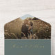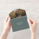 Elegant sage green all-in-one wedding invitation featuring your photo on the top flap, your first names, "Reception to follow" and "Rsvp" showcased in a chic script, your invitation details in classic serif typography, and a white tear-away RSVP postcard, with all inside text rendered in your choice of genuine gold, silver or rose gold foil. You can adjust the size of the script for longer or shorter names by editing in the design tool.