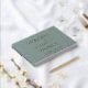 This elegant sage green wedding guest book features your choice of real gold, silver or rose gold foil, your names in classic serif typography joined together by "and" in a chic script with swashes, and your wedding date. You can personalize the title on the spine and add your favorite engagement photo on the back.