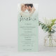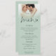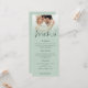 Printable Digital Download or Printed Elegant Script Photo Sage Green Wedding Menu. A modern design with your photo to the top edge behind a graduated tinted layer with the text partially overlaid on top of your image towards the bottom. The main header is in a stylish set script and the rest of the text you can easily personalise.
