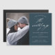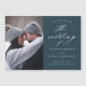 An elegant script photo wedding save the date magnetic card featuring elegant calligraphy details, a vertical photo and classic text on the front. The back is magnetic. Click the edit button to customize this design.