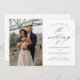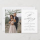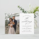 An elegant script 2 photo wedding save the date card featuring elegant calligraphy details, a vertical photo and classic text on the front. The back has a horizontal photo and wedding website for guests to get more information. Click the edit button to customize this design.