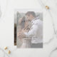 A simple and chic photo wedding save the date card featuring elegant script calligraphy details and classic text overlay on a portrait vertical photo on the front. The back has a full bleed photo. Click the edit button to customize this design.