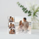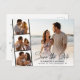 Chic save the date announcement postcard featuring your photo overlayed with a film strip of three smaller square photos and "Save the Date" in a stylish modern script. Add your first names, wedding date and location. On the reverse side, personalize your save the date details and add your names in a signature-like script.