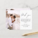 Express your heartfelt gratitude in timeless style with this Elegant Script Photo Wedding Thank You Card. Featuring refined calligraphy, a full photo layout, and minimalistic design elements, this card is the perfect way to thank your guests while showcasing a cherished moment from your big day. Ideal for modern, romantic, or classic wedding themes, it’s fully customizable with your message and photo.