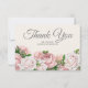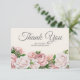 Elegant Script Pink Roses Cream Wedding Thank You Card