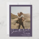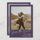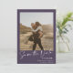 Elegant script calligraphy simple 2 photos dark purple and white wedding save the date.