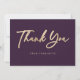 Express your gratitude with this minimalist, yet elegant purple and gold thank you card featuring a modern faux gold foil script font on the front and custom text at the back.