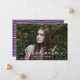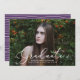Elegant graduation announcements featuring the graduate's horizontal photo with "Graduate" in white script lettering. Personalize the front of the photo graduation announcement by adding the graduate's name, school name, and graduation year. The announcement reverses to display a purple and white hand-drawn stripe pattern.