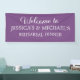 Cute, elegant script purple Rehearsal dinner welcome banner, personalized with the name of the bride and groom to be. The background color of this banner is customizable with Zazzle's design tool, so whatever your rehearsal dinner color theme, you can create your banner to match. Contact me for help with customization or to request additional products for your suite.
