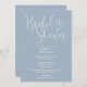 This dusty blue elegant script bridal shower invitation can be personalized with all your special event information and registry QR code on the reverse. Designed by Thisisnotme©