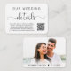 Elegant wedding details enclosure card featuring "details" in a stylish calligraphy script with swashes. Input your wedding website address to create a QR code that your guests can scan to obtain all of your wedding details such as directions and accommodations. On the back, your photo is overlayed with your names and wedding date joined together by a heart.