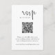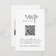 Black and white minimal style rsvp card with a modern elegant calligraphy script. The QR code can be scanned to access the wedding website. The backside has a place for your photo with a light grey border and the couple's name underneath or can be left blank.