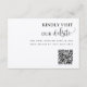 Prompt your guests to visit your website with this elegant, modern, QR Code wedding website RSVP enclosure card. Stylish design with beautiful contemporary calligraphy. Sleek, graceful, and minimal flair. Add your URL address to the template text box, and Zazzle will create a QR code image and add it in the right spot for you! Option to add on the back your website address, any other message, or leave the back blank. Part of our "Modern Romantic Fine Calligraphy" collection, with many coordinating products available.