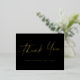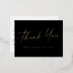 Elegant black thank you postcard featuring the text "thank you" across the card and custom text below in gold, silver or rose gold foil. You can change the background color with the design tool.