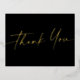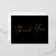 Elegant black thank you postcard featuring the text "thank you" in gold, silver or rose gold foil across the card in a handwritten script font. You can change the background color with the design tool.