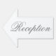 Classic elegant script Reception arrow sign. Grey text on white background.