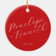 Elegant Script Red Christmas Wedding Personalized Ceramic Ornament