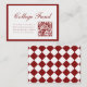 Elegant Script Red College Fund QR Code Graduation Enclosure Card. A classy and elegant wine red and white college fund card, designed with a checkered pattern on the back, script lettering, and a QR code for guests to scan and donate.