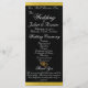 This romantic design features an elegant black background with ribbon borders, wedding ceremony details & thank you on the front with wedding party members on the back. Available in several colors for your wedding theme. (Ribbon is simulated in the artwork). Designed to coordinate with the "Two Shall Become One - Silver & Gold" Wedding Collection. To change details, click «Personalize». To move the text or change the text size, font, or color click «Click to customize further»