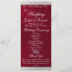 This romantic design features an elegant burgundy background with ribbon borders, wedding ceremony details & thank you on the front with wedding party members on the back. Available in several colors for your wedding theme. (Ribbon is simulated in the artwork). Available in several colors for your wedding theme colors. (Ribbon is simulated in the artwork). Designed to coordinate with the "Two Shall Become One - Silver & Gold" Wedding Collection. To change details, click «Personalize». To move the text or change the text size, font, or color click «Click to customize further»