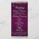 This romantic design features an elegant purple background with ribbon borders, wedding ceremony details & thank you on the front with wedding party members on the back. Available in several colors for your wedding theme. (Ribbon is simulated in the artwork). Available in several colors for your wedding theme colors. (Ribbon is simulated in the artwork). Designed to coordinate with the "Two Shall Become One - Silver & Gold" Wedding Collection. To change details, click «Personalize». To move the text or change the text size, font, or color click «Click to customize further»