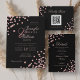 Elegant Script Rose Gold Confetti QR Wedding Black Invitation