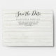 Coordinate these elegant script Save The Date rustic wood look pre-addressed envelopes with matching flat cards for your big announcement. The weathered white wood background is repeated on the inside of these stylish envelopes as well. Save The Date in an elegant handwritten script in black has a subtle light gray drop shadow behind it for added interest. Personalizing your names and address on the back flap of these chic envelopes is easy using the text templates, but if you prefer using envelope seal or traditional return address labels instead, just clear/delete the sample text to erase it and create the perfect Save The Date envelopes printed just for you.