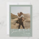 Elegant script calligraphy simple 2 photos muted sage green and white wedding save the date.