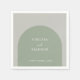 Transform your reception table setting into a cohesive, thoughtfully designed space with these elegant, minimal personalized wedding napkins. Each modern napkin features a boho sage green arch set against a neutral gray backdrop, with the bride and groom names and wedding date elegantly printed inside using delicate life roman script typography.