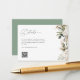 sage green watercolor greenery elegant script wedding details card. You can personalize the details and colors.