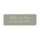 Chic, modern sage green wedding return address label with your names in white elegant handwritten script calligraphy. Simply add your names and address. Exclusively designed for you by Happy Dolphin Studio. If you need any help or matching products please contact us through our store chat. We're happy to help you make your wedding the most beautiful day!