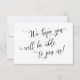 Give your guests a way to respond to your wedding celebration invitation with the help of these simple but elegant RSVP cards. In the design I've used a beautiful swirling script font to create graphic typography overlays reading "RSVP" and "M". On the back, in the same typeface I've added "We hope you will be able to join us!" Fill in the template blanks with your details to personalize the design. All layers were left unlocked so you can also click to further customize and re-position text or even change sizes or the editable fonts. The background color can be changed to anything you like. Please do not hesitate to reach out for assistance with customization.