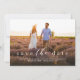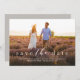 Save the date! You're getting married! You're engaged and want to share the big news! With simple but elegant typography, this save the date photo card is a classic design that features a single horizontal photo. The white wording is placed at the bottom of the frame along with a darkening filter to allow for better legibility. The back is a soft gray beige with a subtle dot pattern.
