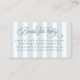 Elegant blue and white striped “Books for Baby” cards add a charming and sentimental touch to any boy baby shower, encouraging guests to bring a treasured book in place of a greeting card. Featuring soft pastel blue vertical stripes with a crisp white background, the design is elevated by graceful script for the heading and clean serif text for the heartfelt poem. The sweet rhyme invites guests to inscribe a personal message inside their chosen book, creating a meaningful keepsake for the little one’s library. Perfect for coordinating with matching invitations, thank you cards, and other boy baby shower stationery for a cohesive and stylish event theme.