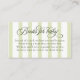 Books for baby shower insert cards with soft sage green and white stripes offer a heartfelt and stylish way to request a beloved book in place of a traditional greeting card. The refined script title paired with an endearing poem in a classic serif font adds warmth and sentiment, making this design ideal for a gender-neutral baby shower or a minimalist nature-inspired theme. The gentle green tones evoke freshness and tranquility, perfectly suiting modern, rustic, or botanical shower decor. With a clean layout and timeless aesthetic, this insert helps create a treasured baby book library filled with personal messages and love from family and friends.