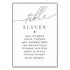 Elegant Script Table Number Guest Names Sign