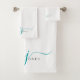 Elegant Script Teal Monogram Initials Name Bath Towel Set