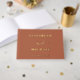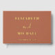 This elegant terracotta wedding guest book features real gold foil, your names in classic serif typography joined together by "and" in a chic script with swashes, and your wedding date. You can personalize the title on the spine.